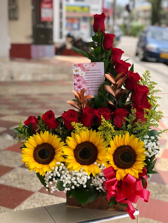 Sorprende a esa persona especial con este espectacular arreglo que combina la energía alegre de los girasoles con la elegancia apasionada de las rosas rojas premium. Diseñado para iluminar cualquier espacio y demostrar amor sincero, este bouquet es el complemento perfecto para cumpleaños, aniversarios o simplemente para alegrar el día. Incluye una tarjeta dedicatoria personalizada.